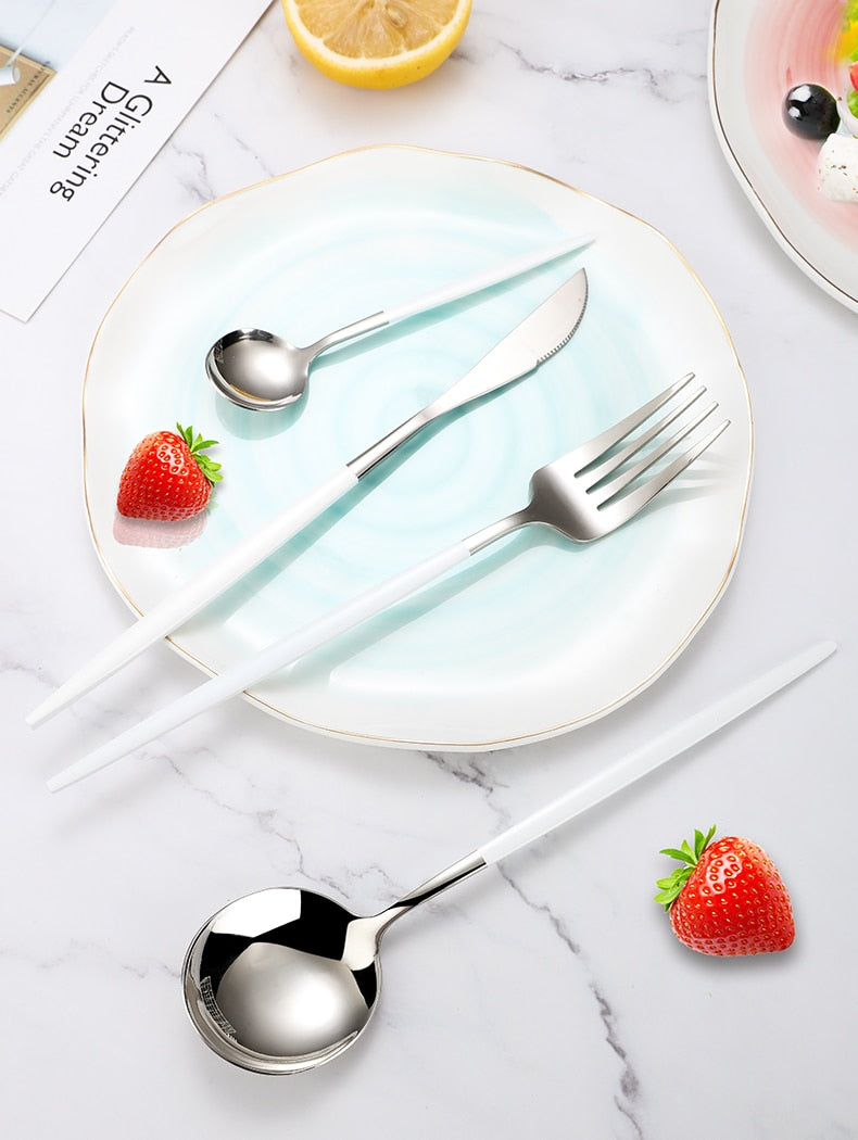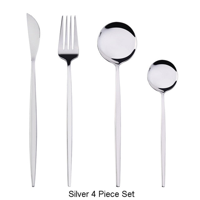 Black Gold Cutlery Set are impeccable coverage, quality, and rounded edges inflexible. Provide a wonderful dining experience, Dinner Knife Fork Spoon is used for everyday and ceremonial picnics, camping, traveling, but also for weddings, birthdays, family celebrations, banquets, restaurants, or hotels.